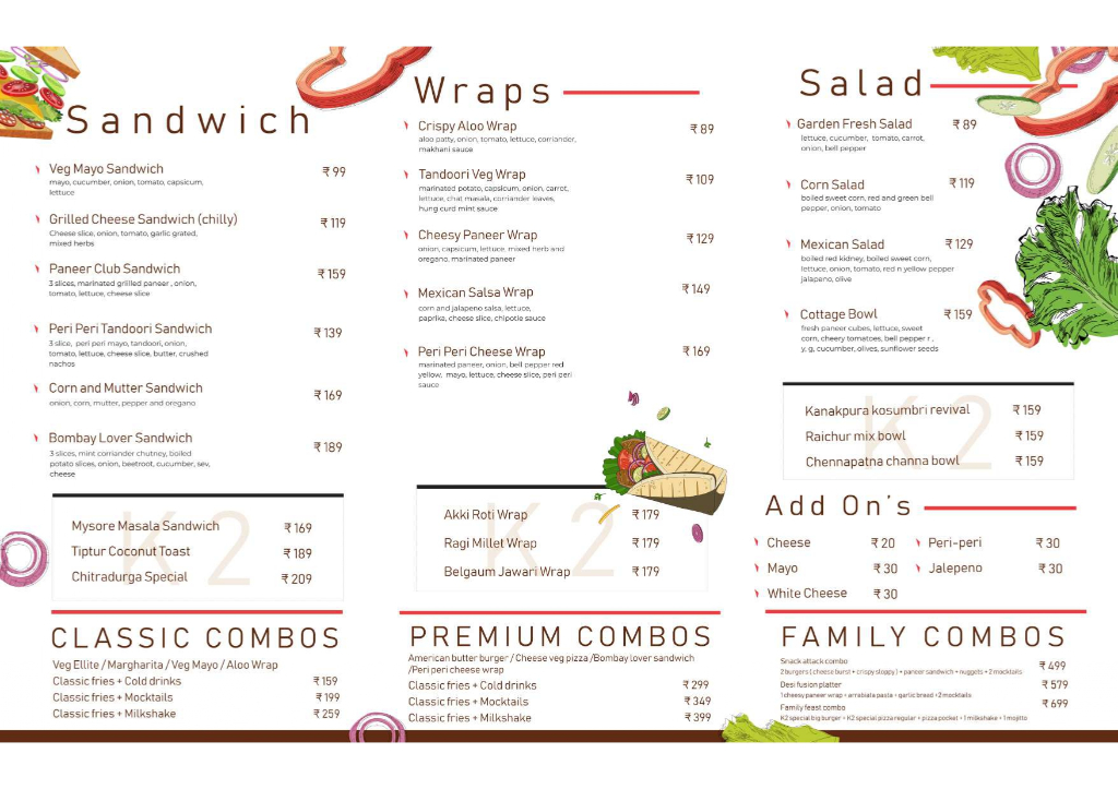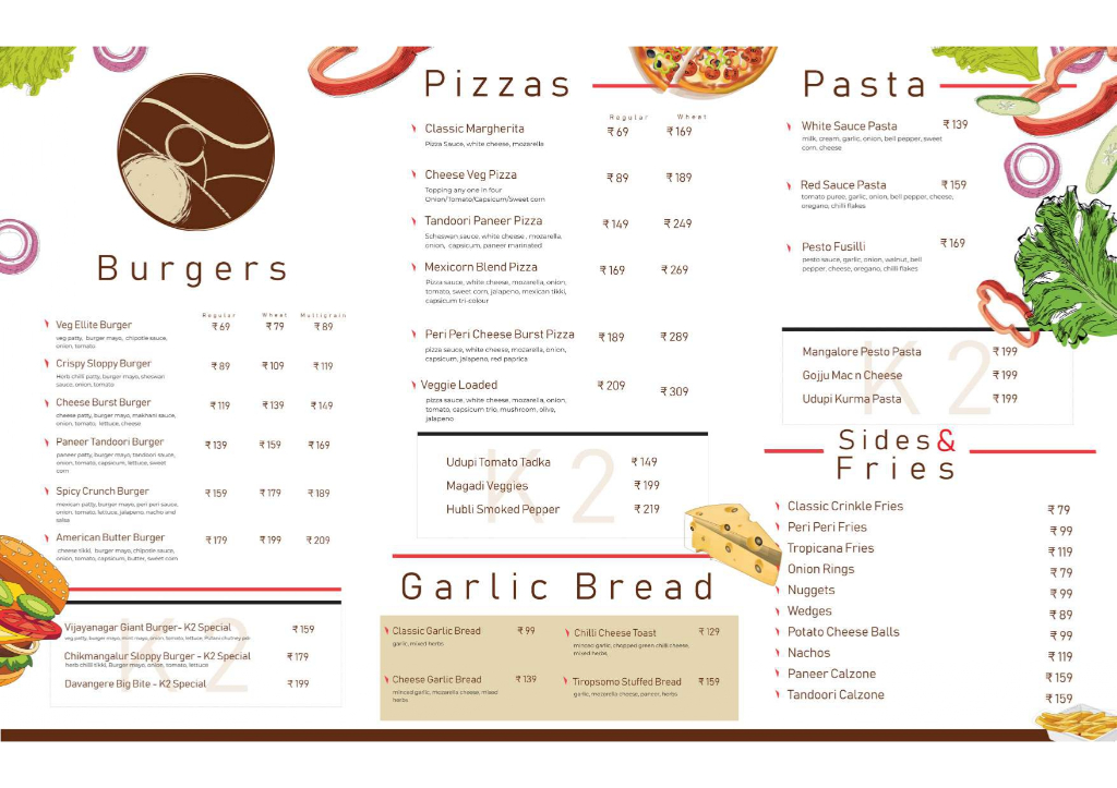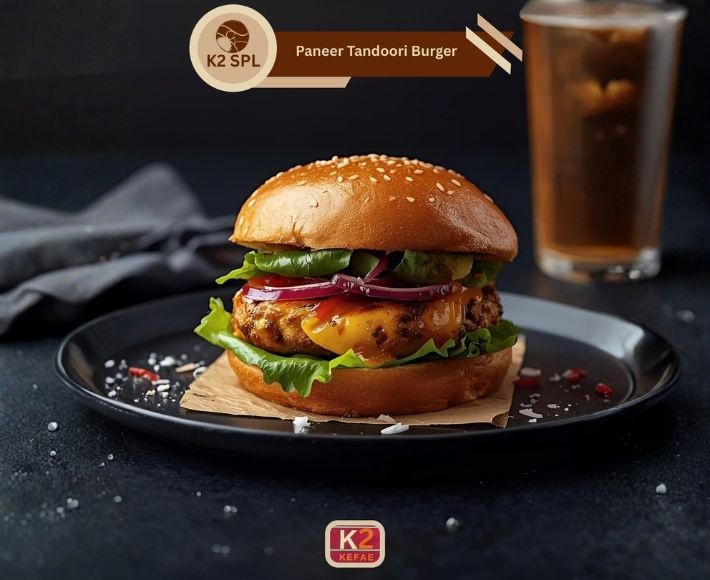 Paneer patty, burger mayo, tandoori sauce, onion, tomato, capsicum, lettuce, sweet corn